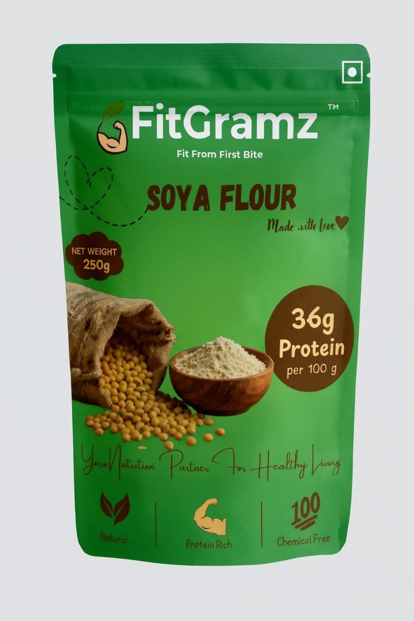 FitGramz Soya Flour is made from premium quality soybeans. A natural, vegetarian source of nutrition that boosts protein and fiber in your daily meals. Perfect for mixing with atta, batters, or baking to make recipes healthier.